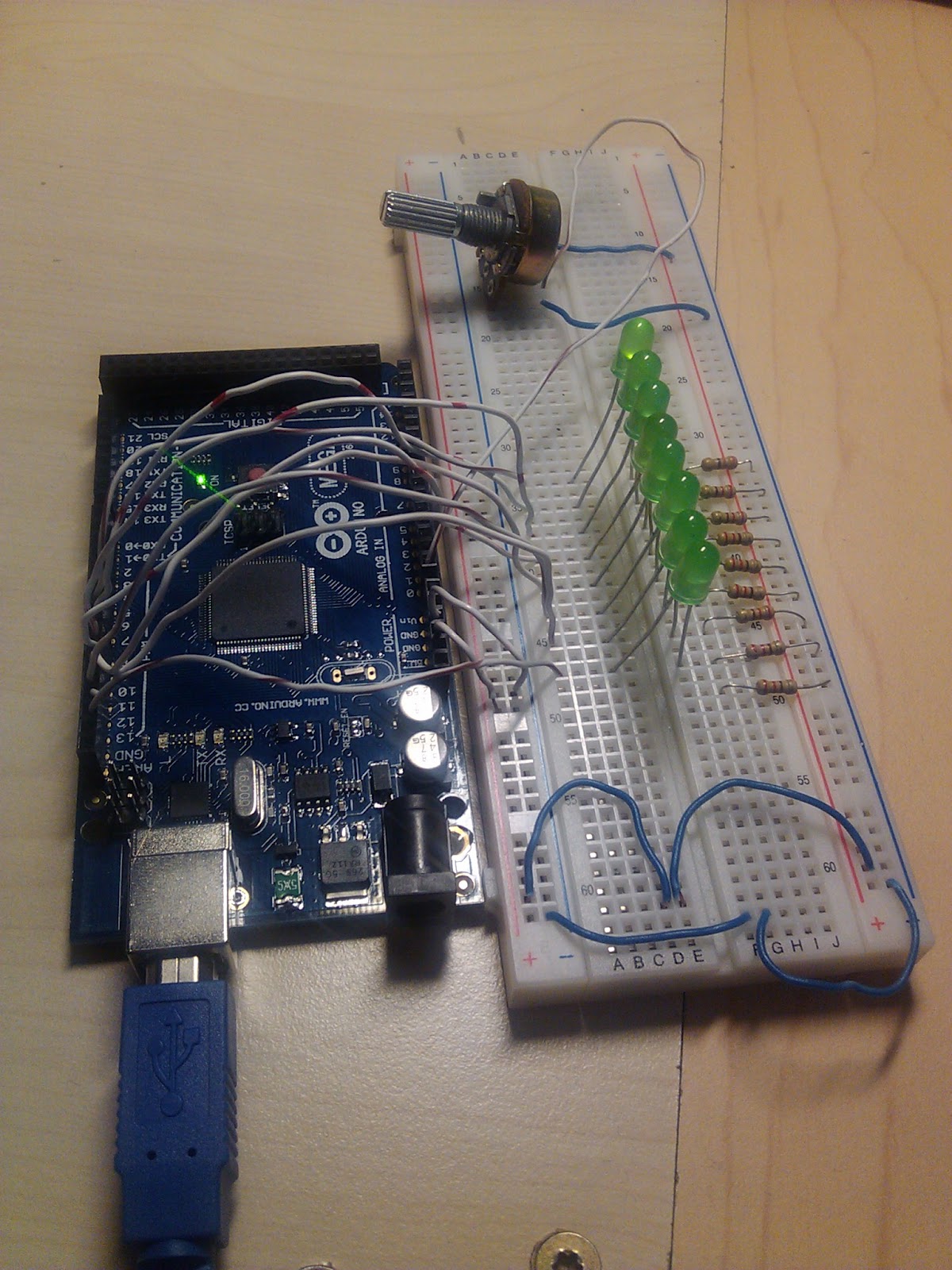 Bu projede yeni birşey birşey yapmayacağım. Henüz elimde çok fazla sensör ve elektronik cihaz çeşidi olmadığı için farklı projeler yapamıyorum :( Fakat su süreyide boş geçirmemek gerekiyor. Bu nedenle basit projeler yaparak paslanmamakta fayda var :P Bu çalışmada bir potansiyometre ve yan yana dizilmiş olan sekiz tane led ile potansiyometrenin sağa ve sola çevrilmesini baz alarak ışığı sağa sola hareket ettirmeye çalışacağım. Kısacağı ben potansiyometreyi hareket ettirdikçe ışık sağa ve sola gidiyomuş gibi görünecek. Bir nevi ünlü karaşimşek devresinin kontrolü benim elimde olan versiyonu :D